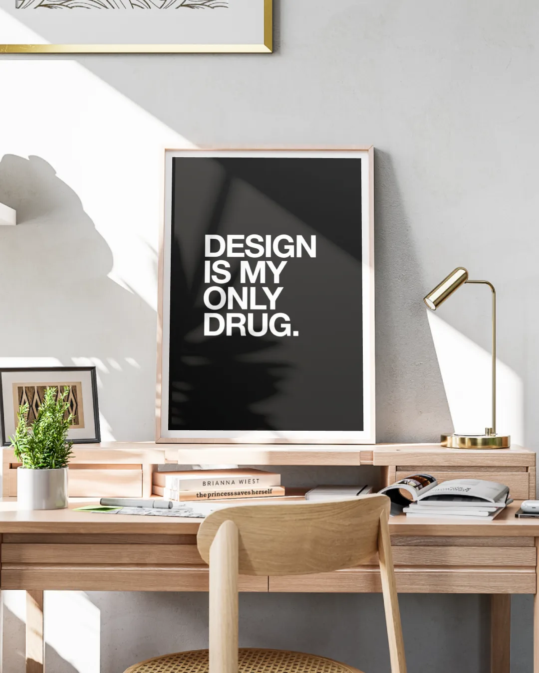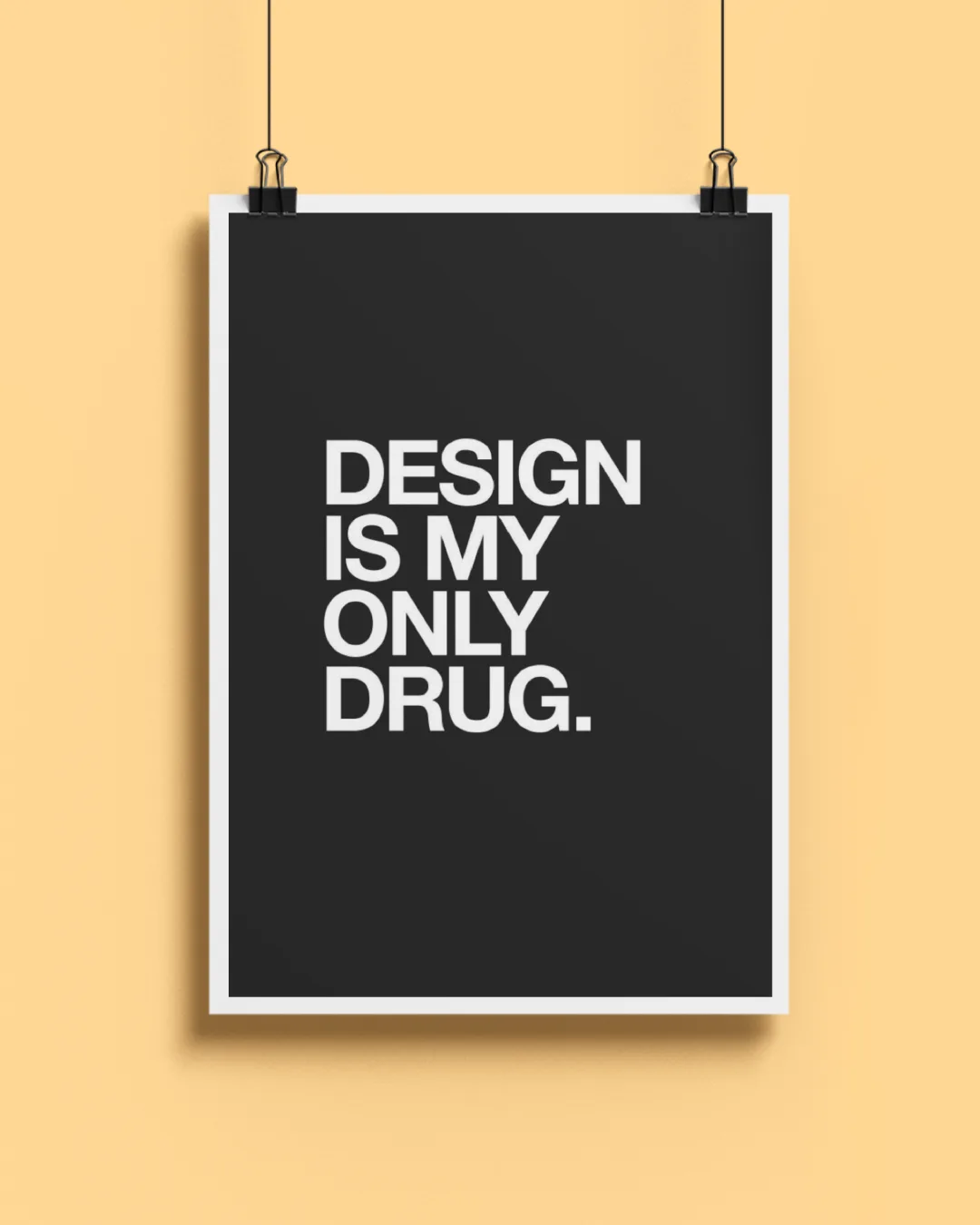 Express your passion for creativity with this striking “Design is my only drug” poster, rendered in powerful white typography against a deep black background. Perfect for design studios, home offices, or any space where creative energy runs high, this minimalist wall art makes a bold, fun statement about the daily thrill of the creative process. Printed on premium 300 GSM luster finish paper, it delivers crisp lines, long-lasting color, and a smooth, modern texture.