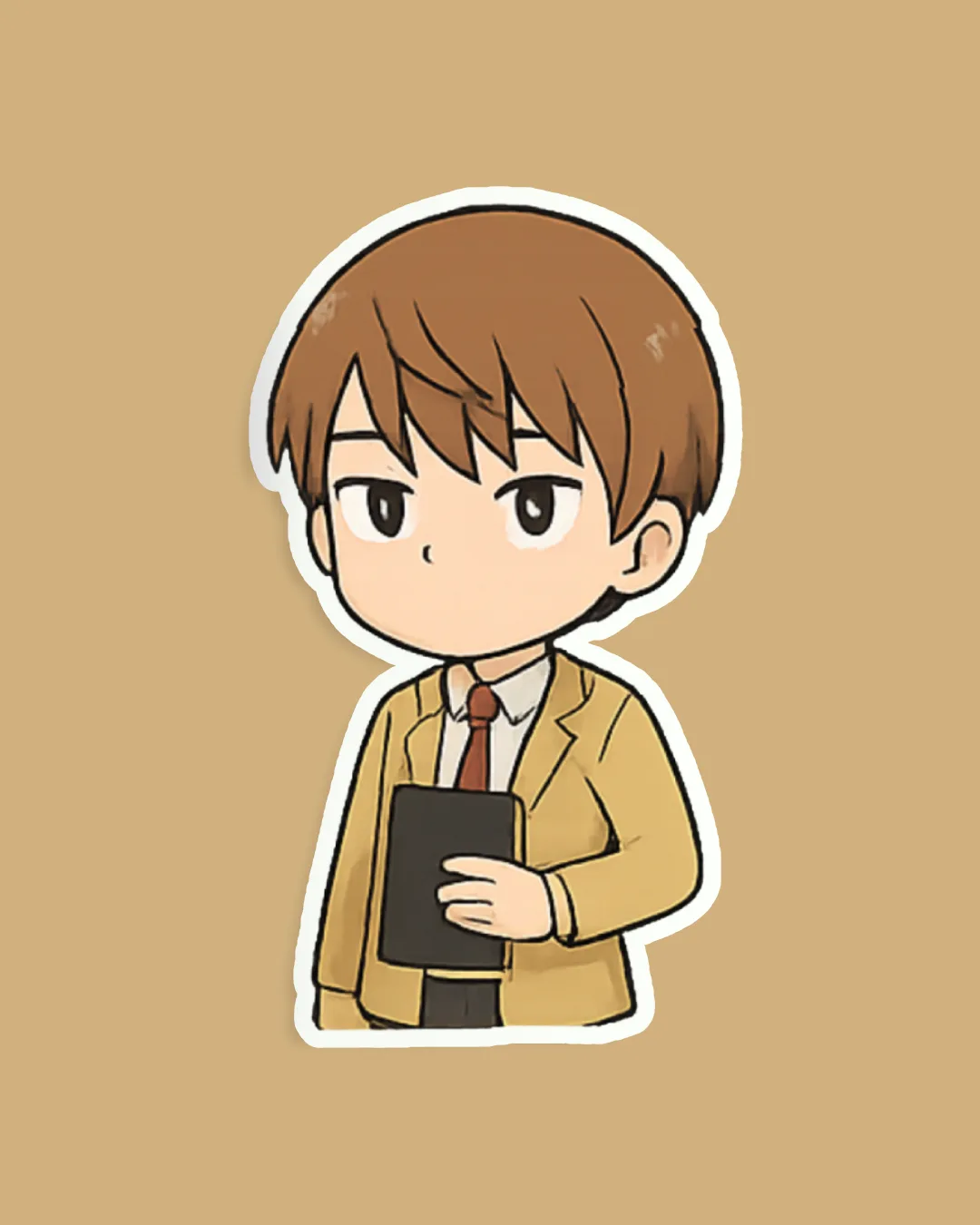 Keep your gear clever, mysterious, and anime-cool with this Chibi Light Yagami sticker! Capturing the iconic anti-hero from Death Note in a neat cartoon style, this sticker shows Light in his school outfit, clutching the legendary Death Note with a thoughtful expression.