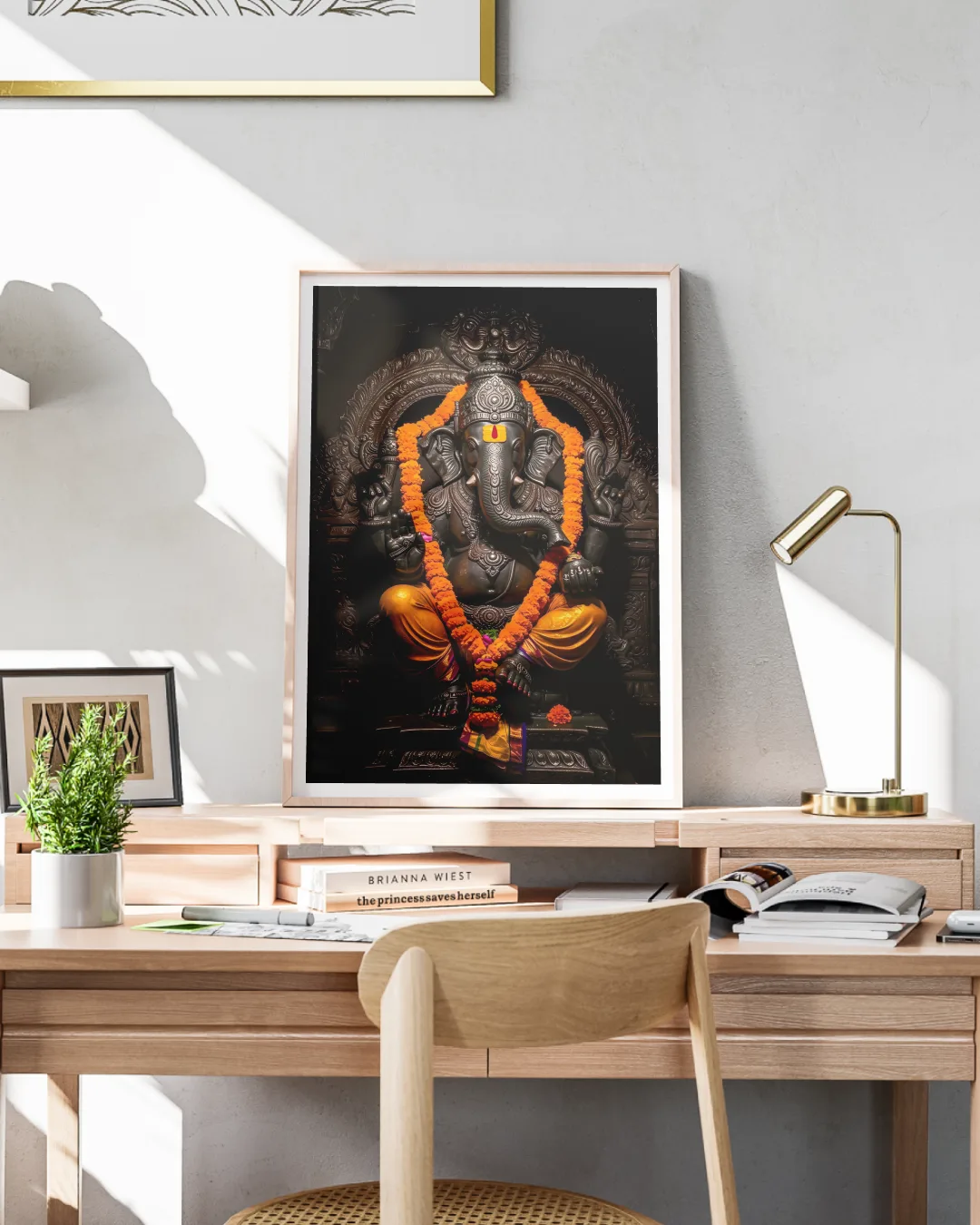 Invite positivity, wisdom, and prosperity into your home with this stunning Lord Ganesha Poster 🕉️✨. Featuring intricate detailing of Ganpati Bappa with a vibrant garland, this artwork radiates peace and divinity. Printed on 300 GSM matte finish paper, it ensures sharp details, rich colors, and a premium non-reflective texture for a sacred and elegant look.