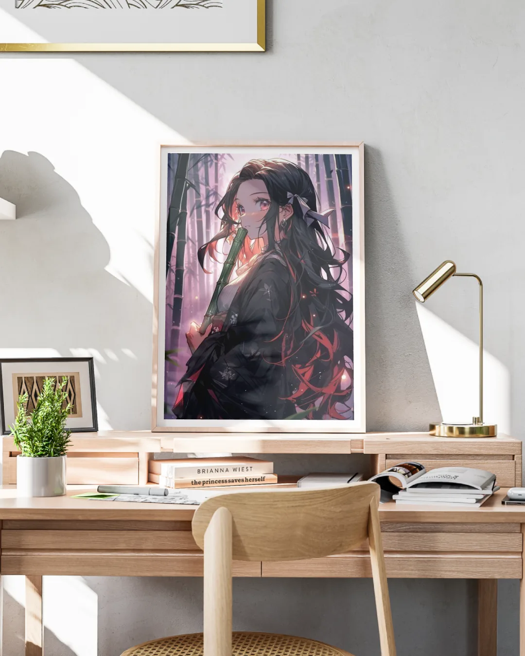 Step into the serene and mystical world of Demon Slayer with this captivating “Nezuko Kamado” poster. Featuring Nezuko with her signature bamboo muzzle and flowing hair, the scene is set in a tranquil bamboo forest with soft pastel lighting to reflect her strength and grace. High-definition digital art and rich colors make this an enchanting choice for any manga/anime fan, perfect for bedrooms, living spaces, or work nooks.