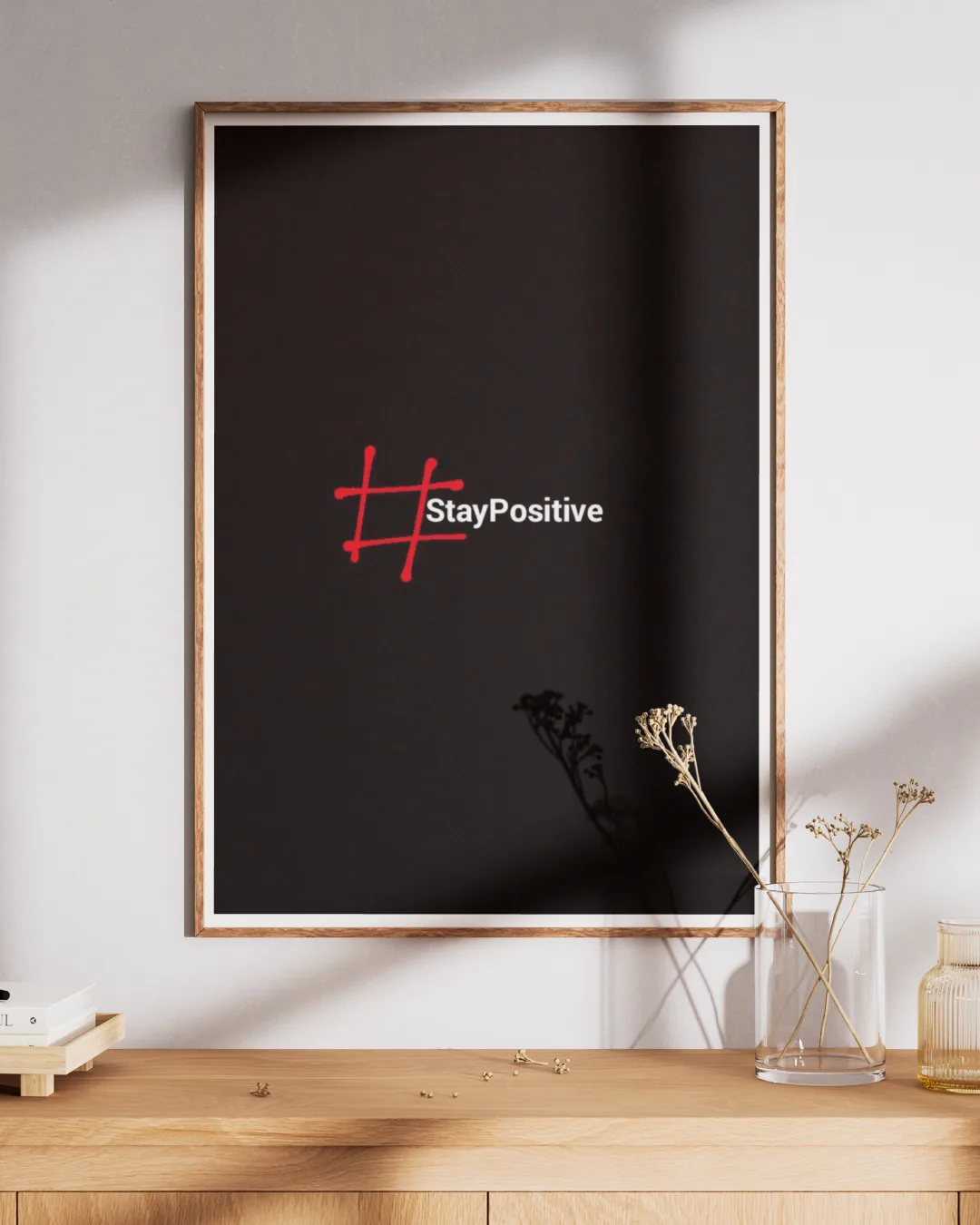 Brighten up any space with this eye-catching minimalist poster: “#StayPositive.” Featuring a bold red hashtag and clean white type on a deep black background, this print delivers encouragement with a modern social media twist—ideal for home offices, bedrooms, classrooms, or creative zones that thrive on optimism. Printed on premium 300 GSM luster paper, it’s crisp, fade-resistant, and refreshingly contemporary.