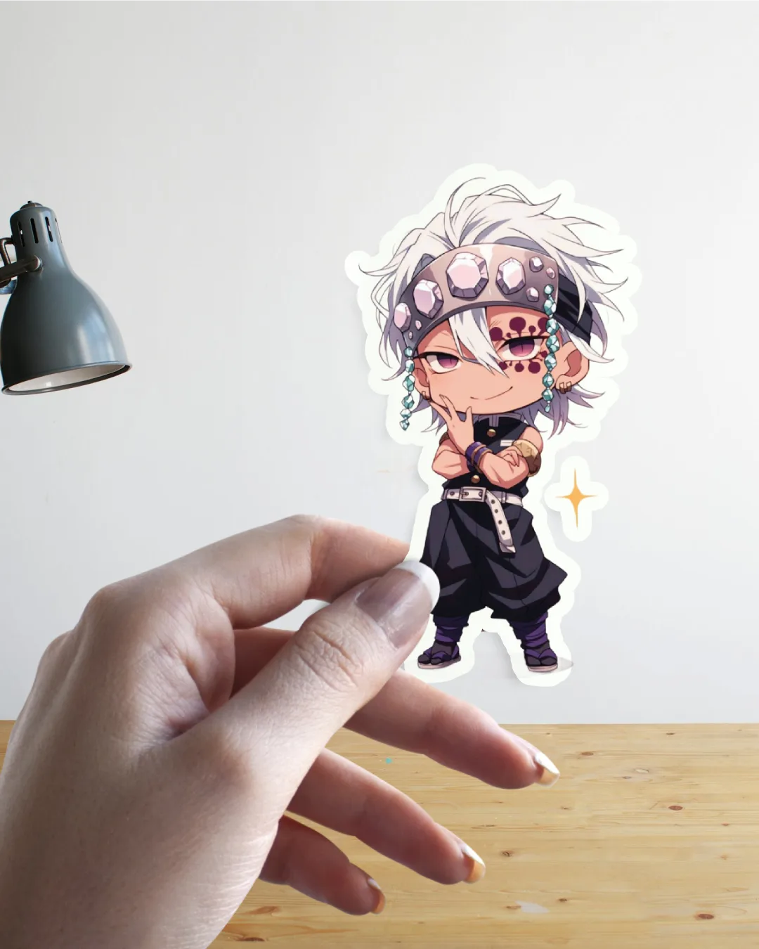 Add a burst of anime flair to your collection with this adorable Chibi Tengen Uzui sticker poster! Inspired by the fan-favorite Sound Hashira from Demon Slayer, this design features Tengen’s iconic jeweled headband, striking gaze, and bold pose—remixed in an irresistibly cute chibi art style with dazzling detail.