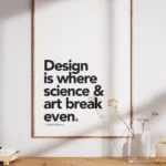 Celebrate the meeting point of creativity and intellect with this minimalist “Design is where science & art break even” wall art, inspired by Robin Mathew.