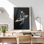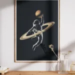 Take your imagination to new worlds with this creative space-themed poster—featuring an astronaut hooping with Saturn’s iconic rings and reaching for a planet basketball.