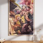 Capture the bright spirit and unbreakable bond of Demon Slayer’s iconic group—Tanjiro, Nezuko, Zenitsu, and Inosuke—smiling together under cherry blossoms in this heartwarming anime poster.