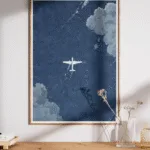 Fuel your wanderlust and adventurous spirit with this captivating minimalist poster featuring a serene airplane soaring above textured blue skies and dreamy clouds…