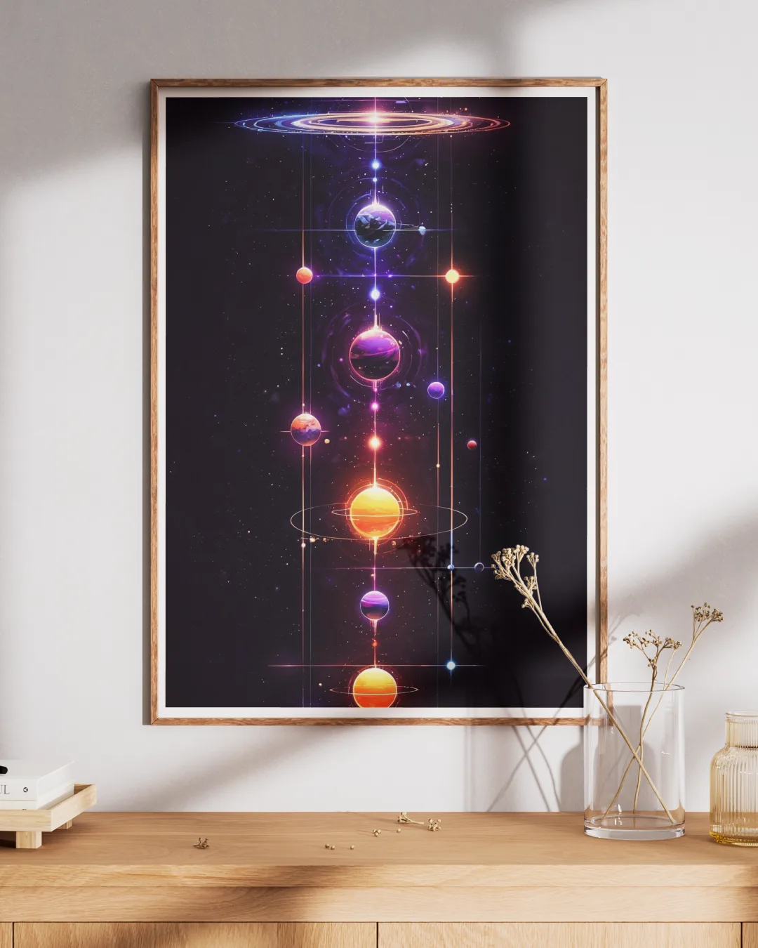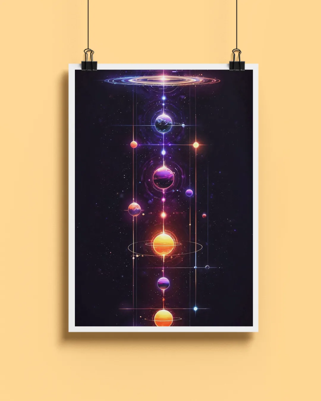 Explore the mysteries of space and universal order with this hypnotic cosmic art poster…