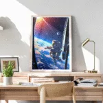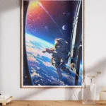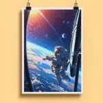 Witness the awe of spacewalks with this vibrant poster…