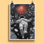 Journey where no one has gone—this captivating artwork features an astronaut spinning…