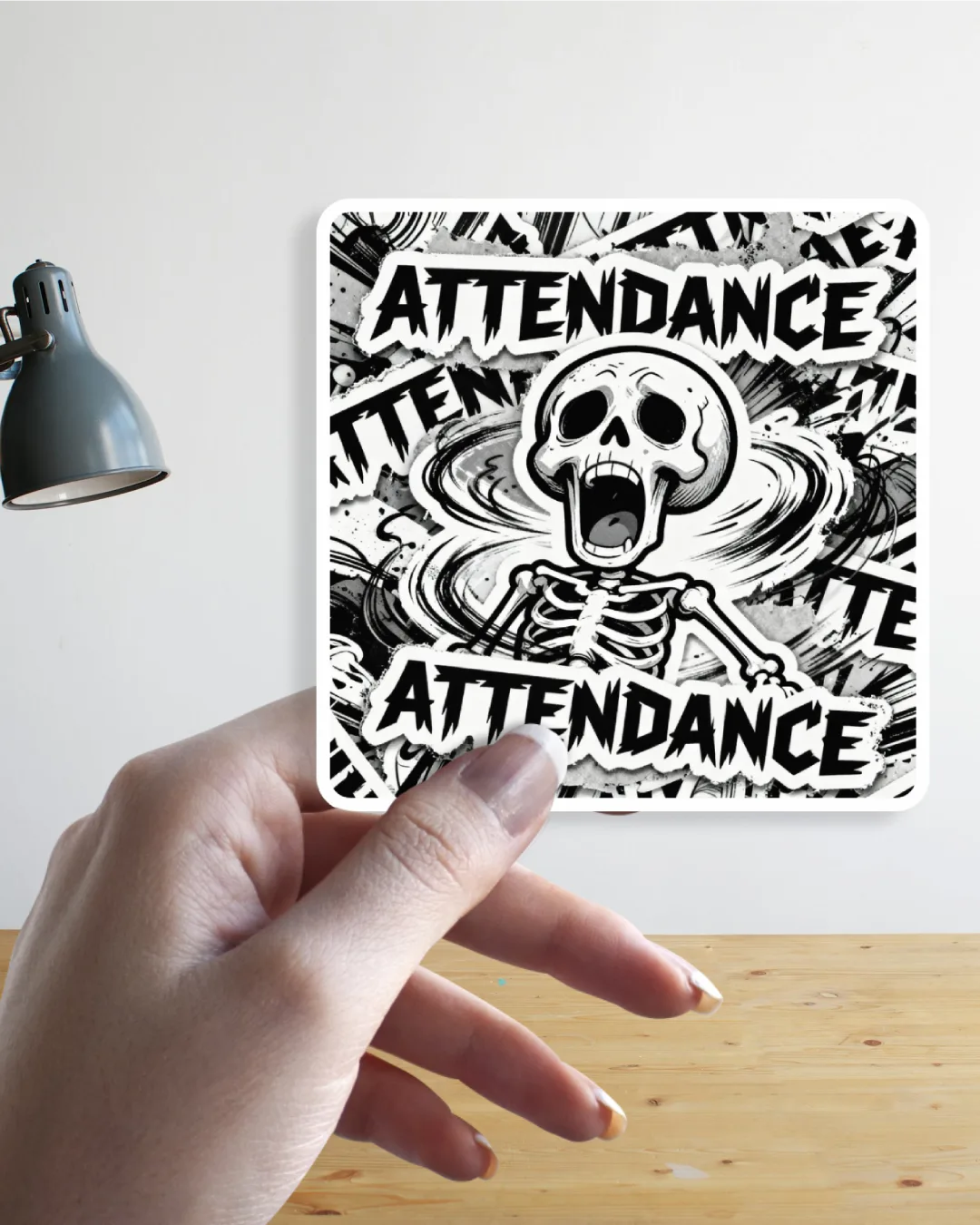 Capture peak classroom chaos with this Attendance Screaming Skeleton sticker!
